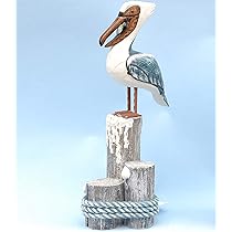 Amazon Com Large Hand Carved Nautical Wood Pelican Statue Carving Sculpture Art Home Kitchen